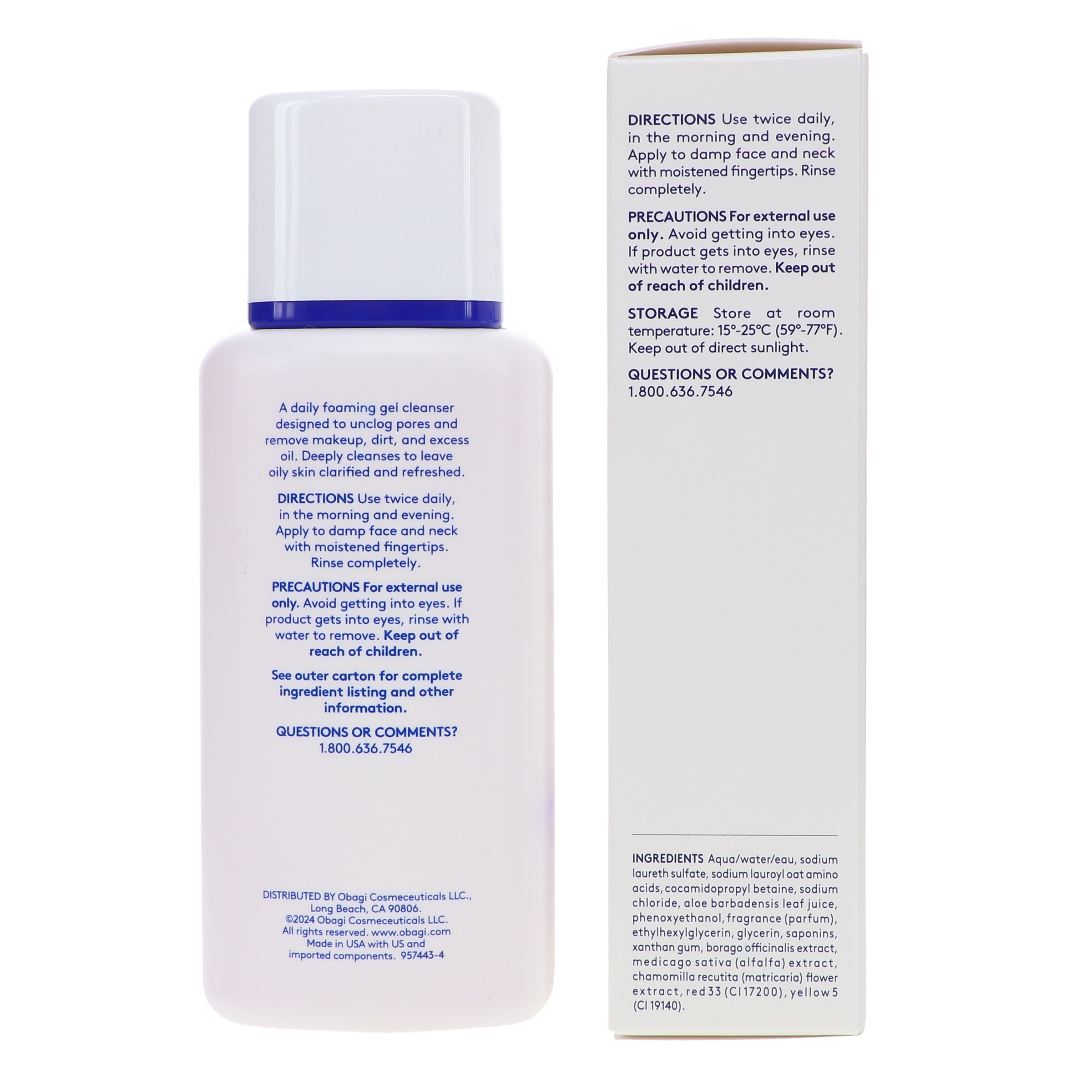 Obagi Nu-Derm Foaming Gel Cleanser for Face – Deep-Cleansing & Hydrating Facial Cleanser with Aloe Vera – For Normal to Oily Skin Types