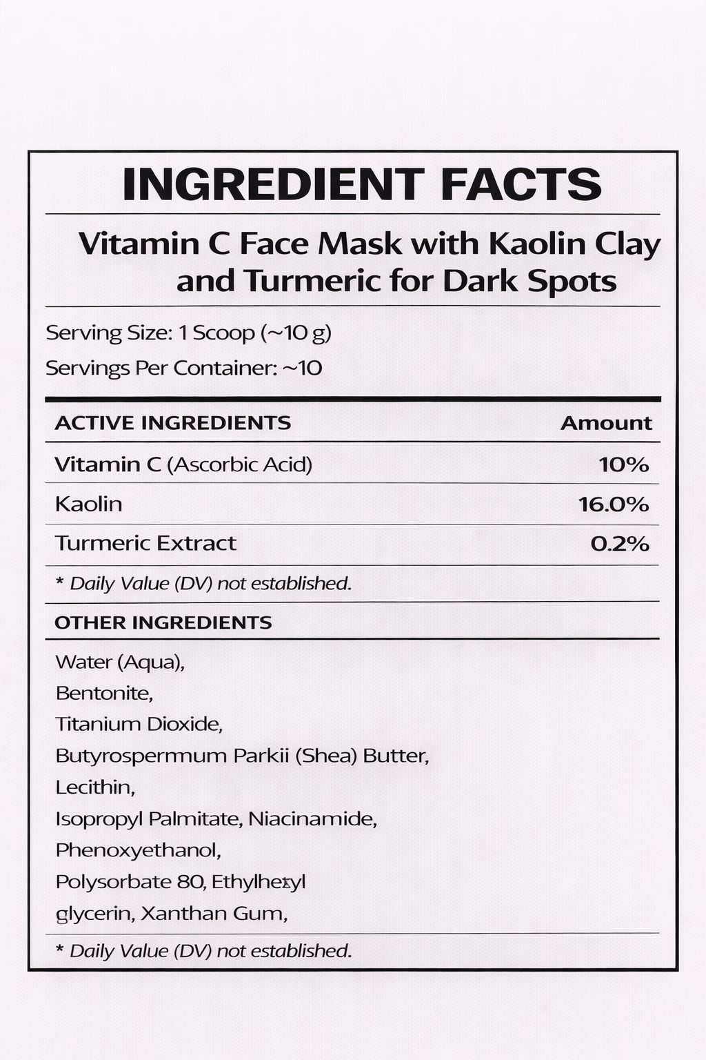 Vitamin C Face Mask with Kaolin Clay and Turmeric for Dark Spots